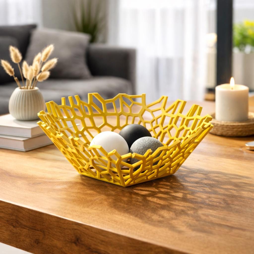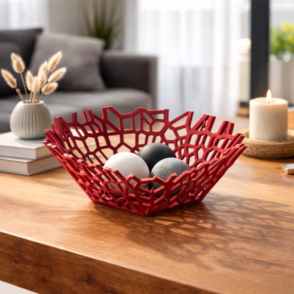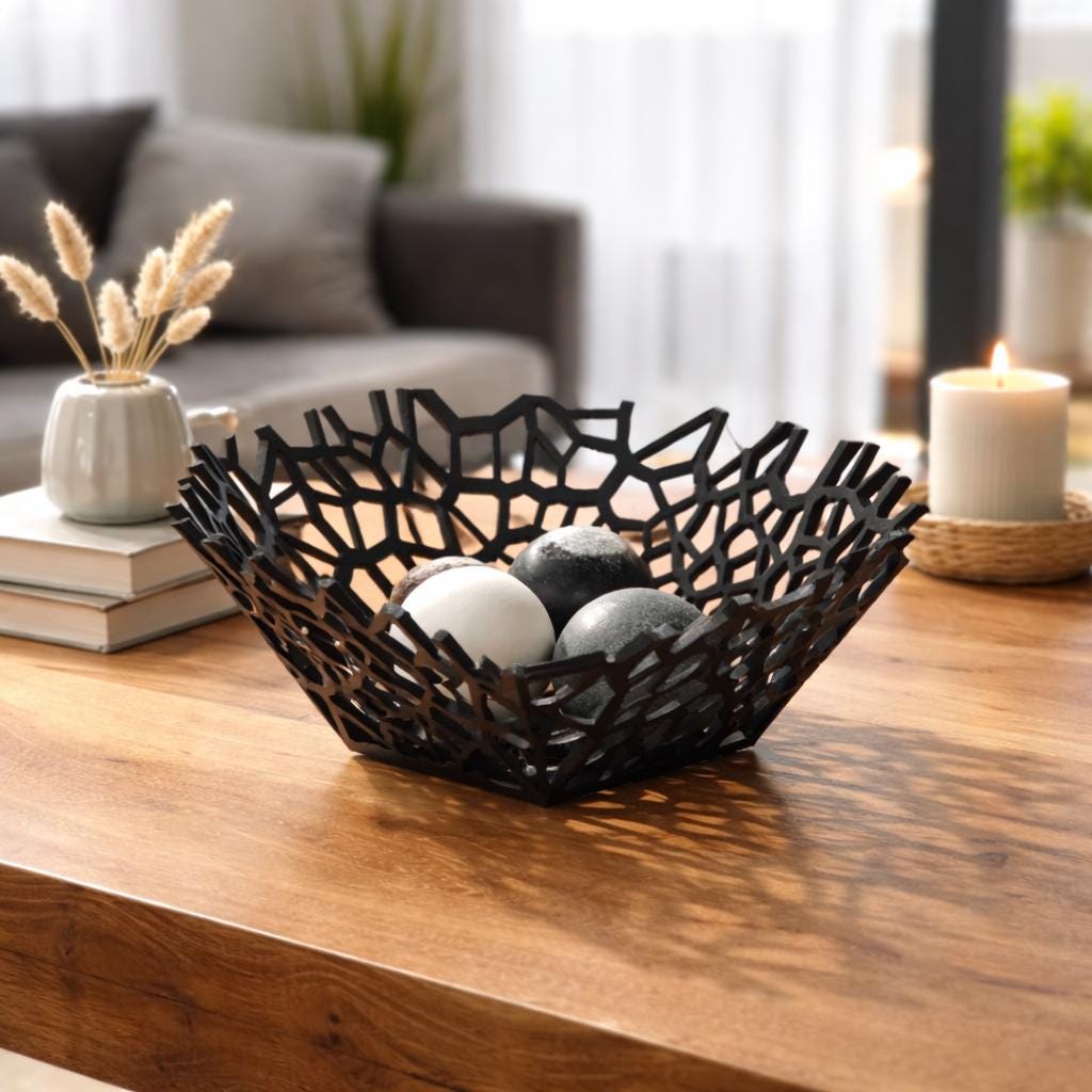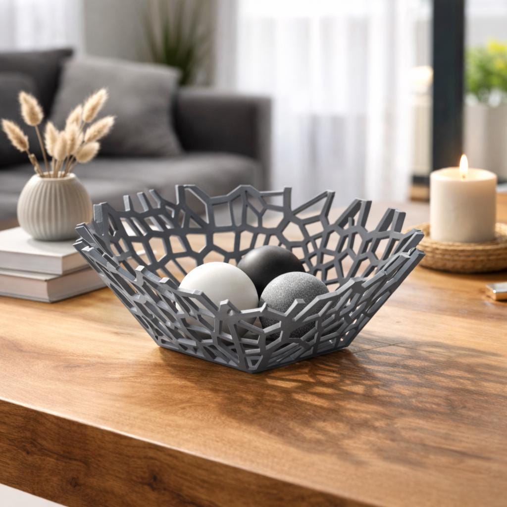 Bring a modern, sculptural touch to your space with this unique Voronoi bowl. Inspired by organic geometric patterns found in nature, this design combines structure and lightness, creating a striking visual effect from every angle.