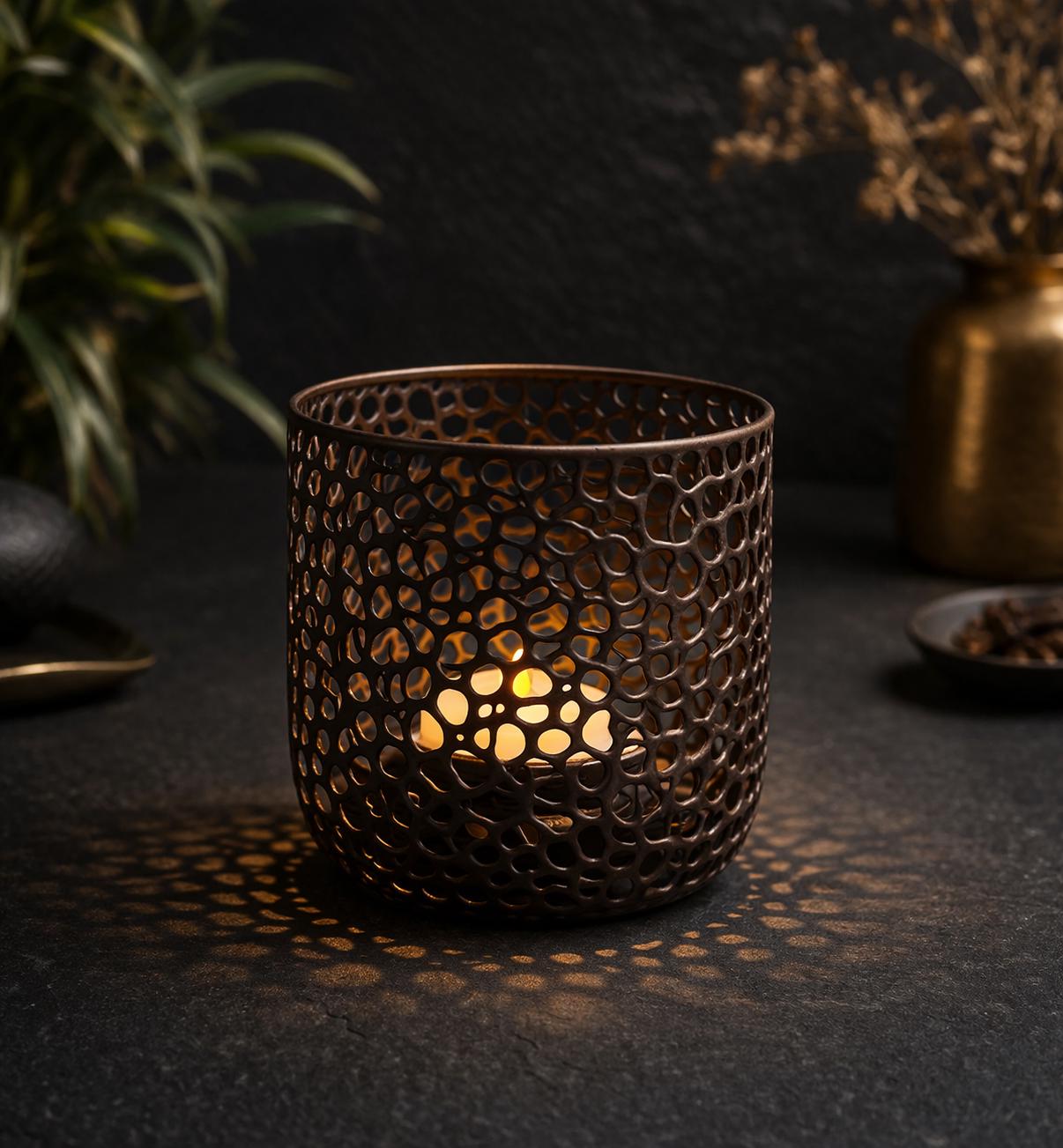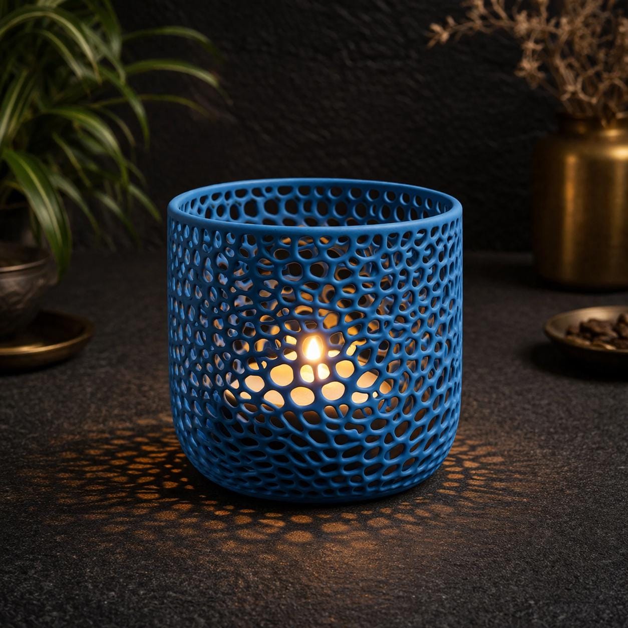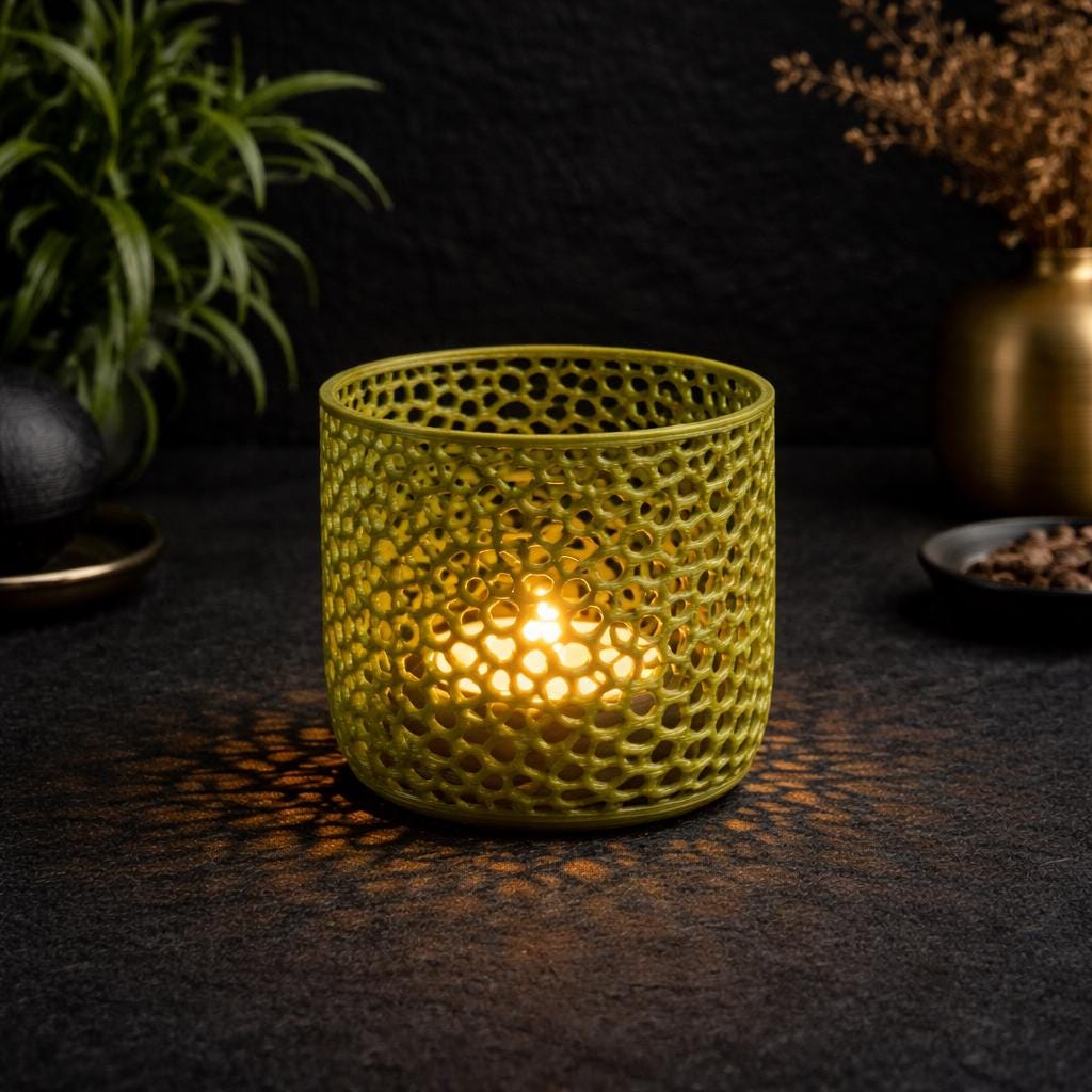 Add a warm and modern touch to your home with this 3D printed tealight holder made from high-quality PLA. The organic, lattice-style design creates beautiful light patterns when used with an LED tealight, making it a perfect piece for cozy and stylish interiors.