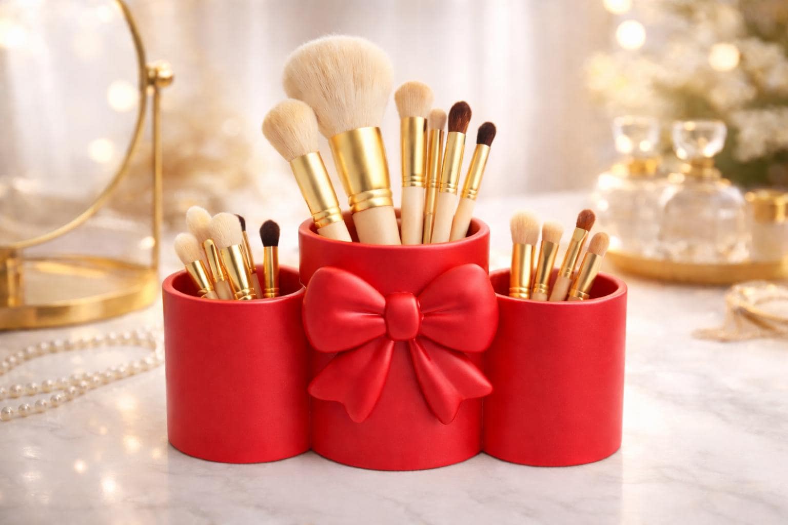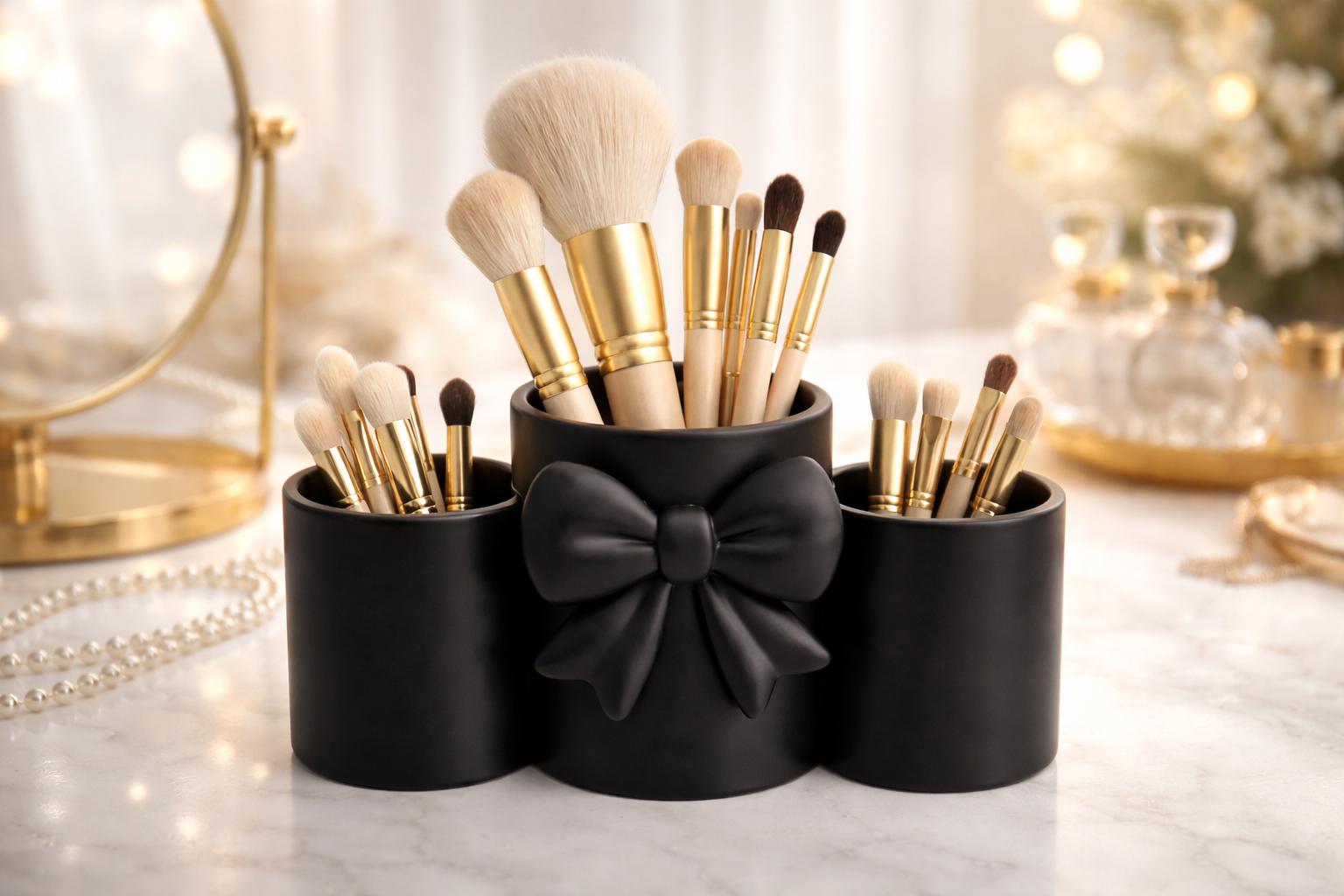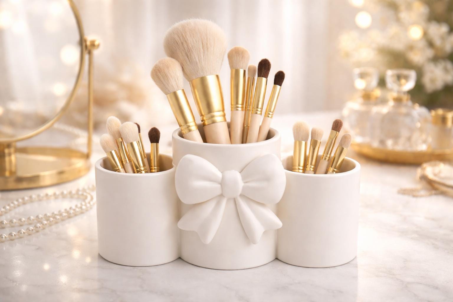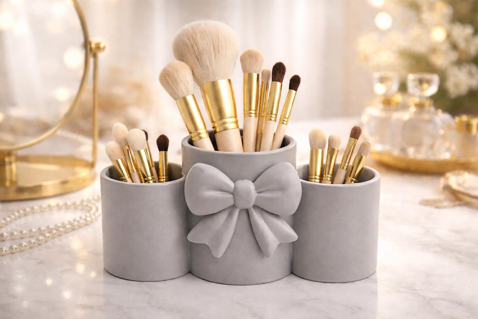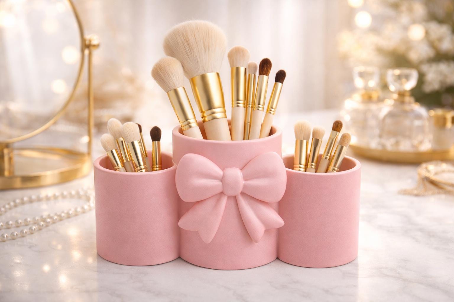 Makeup Brush Holder with Bow – Aesthetic Vanity Organizer