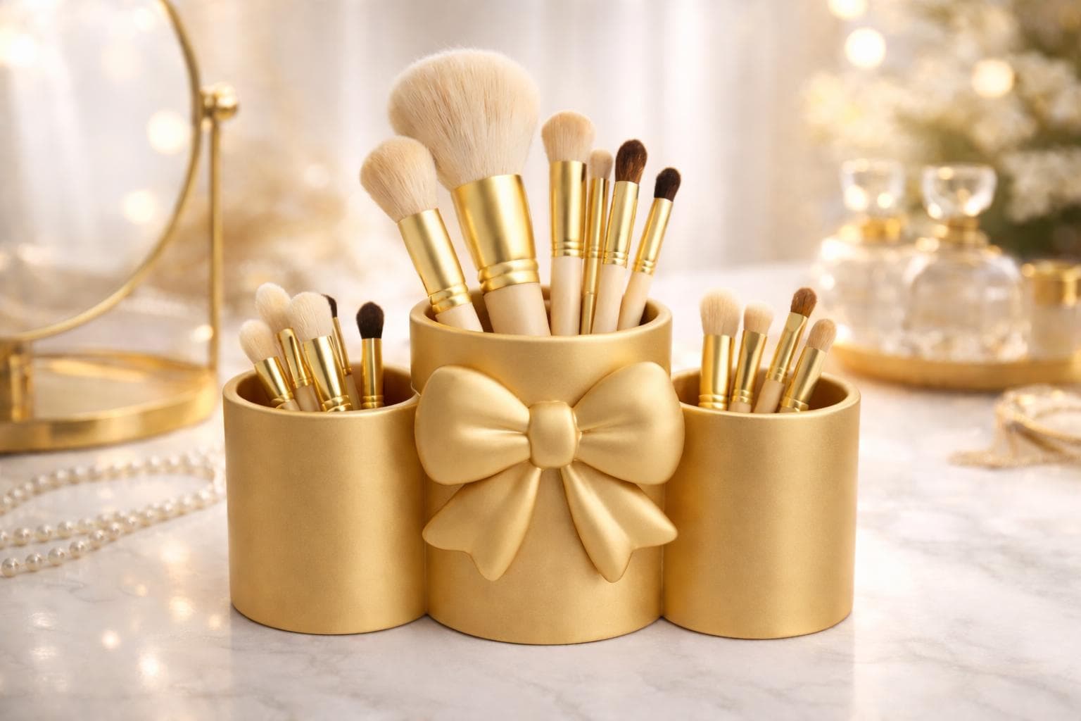 This elegant makeup brush holder combines functionality, aesthetics, and a touch of luxury – perfect for anyone who loves beauty and a clean setup.